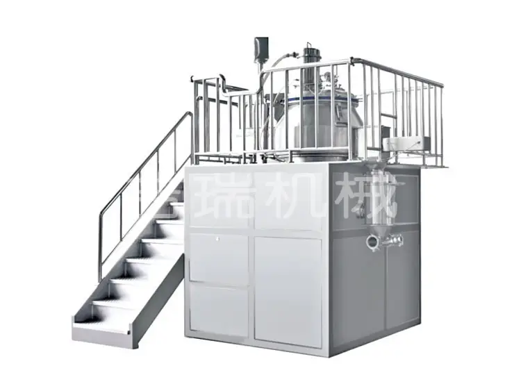 粉状物料在容器中由于混合桨的搅拌作用,呈半流动状态并充分混合,然后注入粘合剂(中成药流浸膏等流体)使之成为湿润软材,经整粒桨(制粒刀)切割成为均匀的湿颗粒。特点
